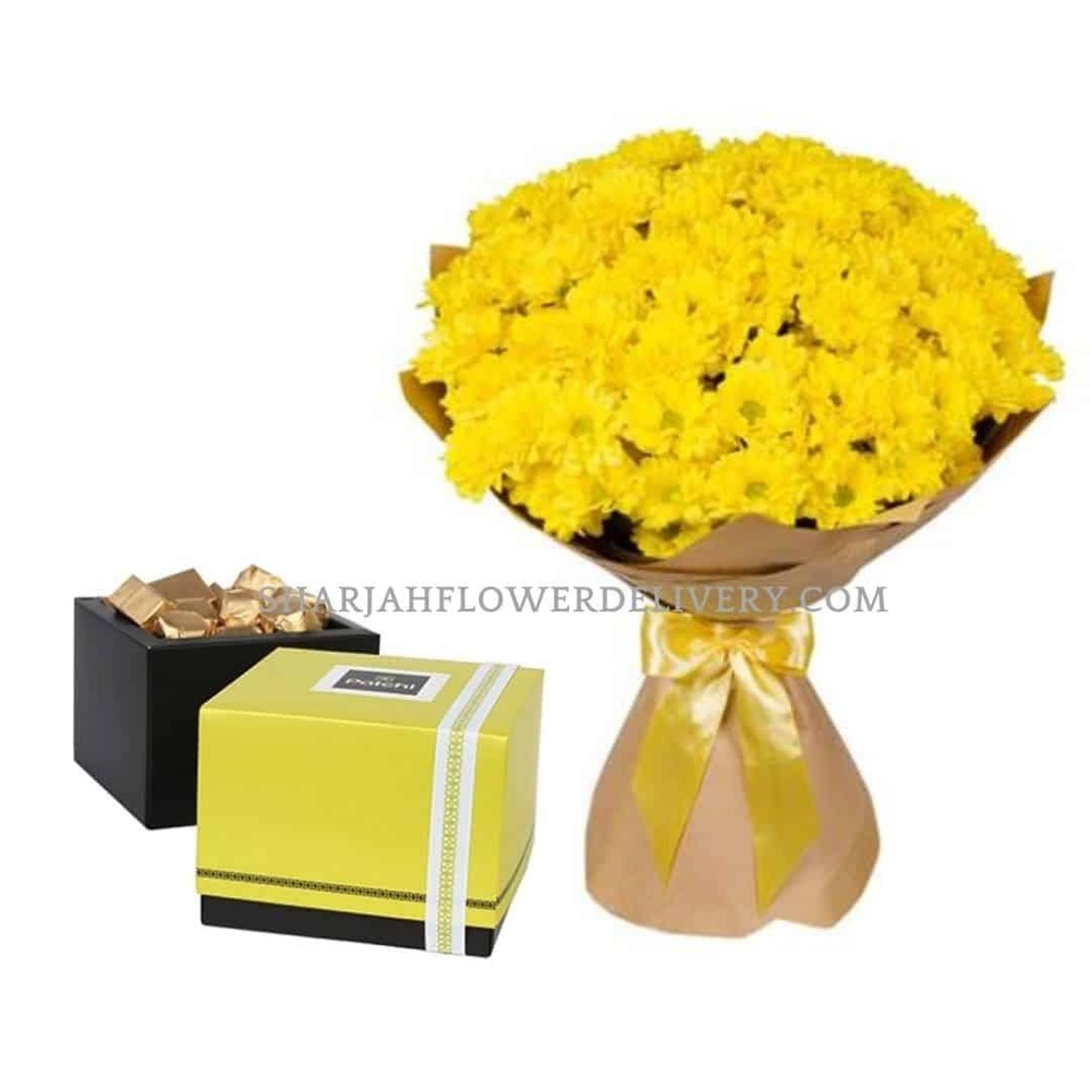 Buquê Grande de Crisântemos Amarelos e Chocolate